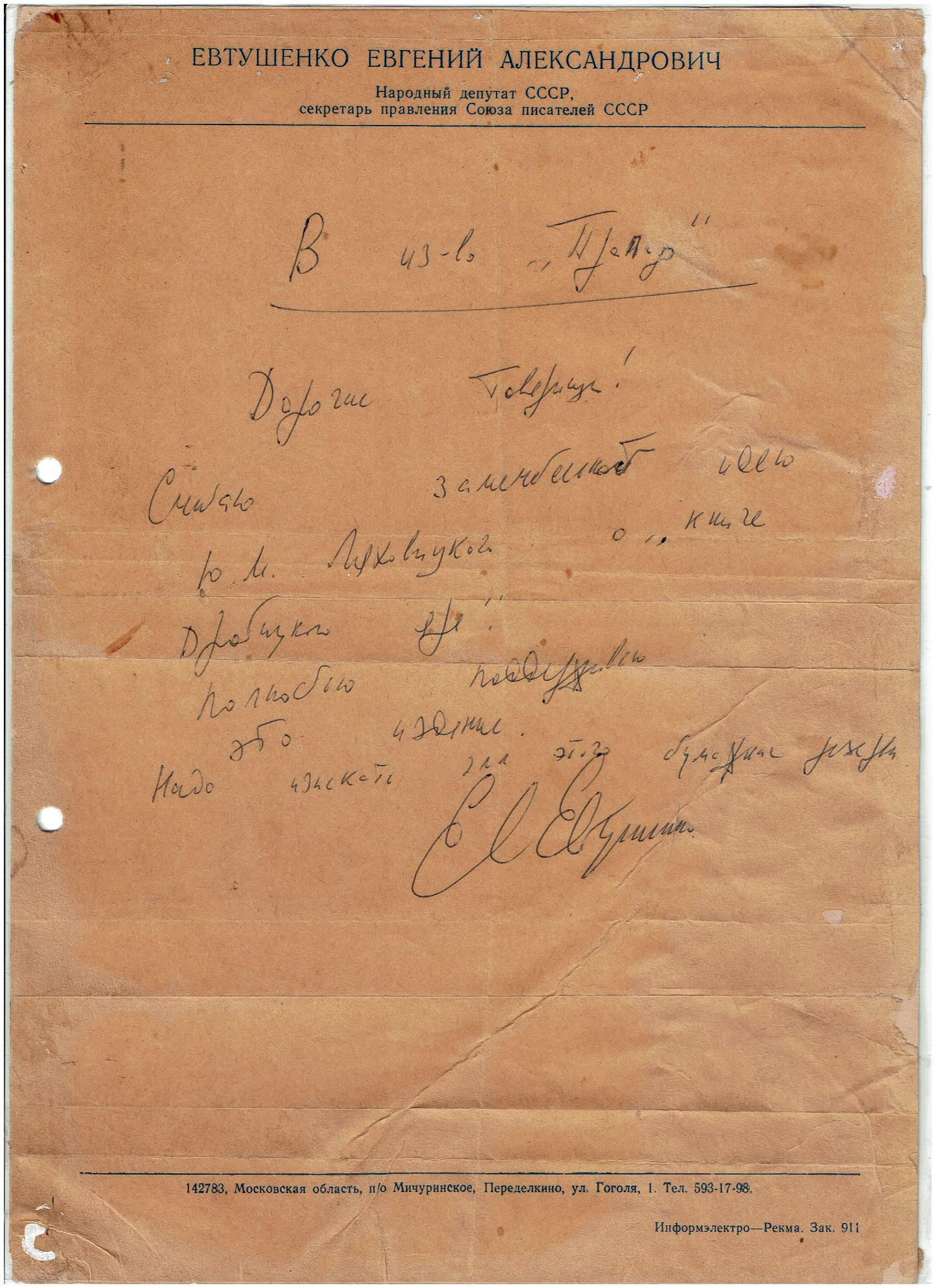Следует отметить, что параллельно со сбором материала для «Попранной мезузы» Ю.М. Ляховицкий, по просьбе дирекции архива, составил и передал ей перечень всех имевшихся в «спецхране» описей документов по данной теме - для их последующего «рассекречивания» и перевода на общее хранение.