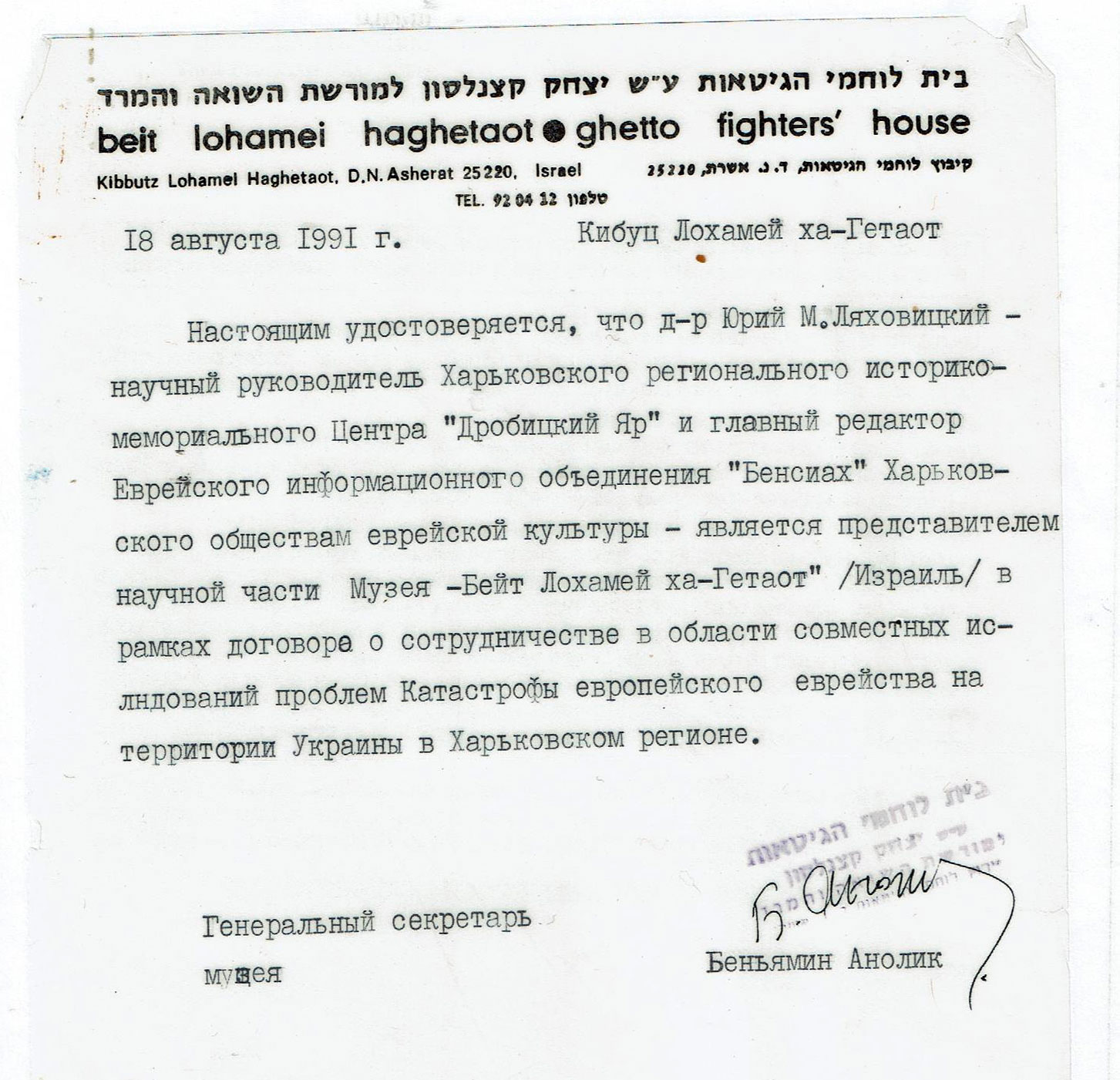 Дальнейшая деятельность доцента Ю. М. Ляховицкого по данной теме проводилась в легальных рамках учрежденной им частной еврейской газеты «Бенсиах» («Собеседник») (1989) и руководимой им Секции истории и культуры еврейского населения Слободской Украины («Институт еврейских исследований») Северо-Восточного научного центра НАН Украины (1994), а также ряда действовавших под его руководством в тот период (до его отъезда из страны в 1996 г.) неформальных (легализованных путем уведомления) еврейских организаций по изучению Катастрофы, как-то: Харьковский региональный историко-мемориальный центр Катастрофы (ХРИМЦИК) «Дробицкий Яр» (1988); Украинский мемориальный фонд Холокоста «Дробицкий Яр» (1990) ; Международный фонд Холокоста «Дробицкий Яр» (1993), институт изучения Холокоста при Нью-Йоркской академии наук (действительным членом которой он был избран в 1996 г.), Независимый архив Холокоста «БеНАХ (1996), а также - проект (см. фотокопию правительственной телеграммы) «Учебно-просветительский комплекс музея Холокоста» (на базе харьковского Дома ученых ) (1996) и др.